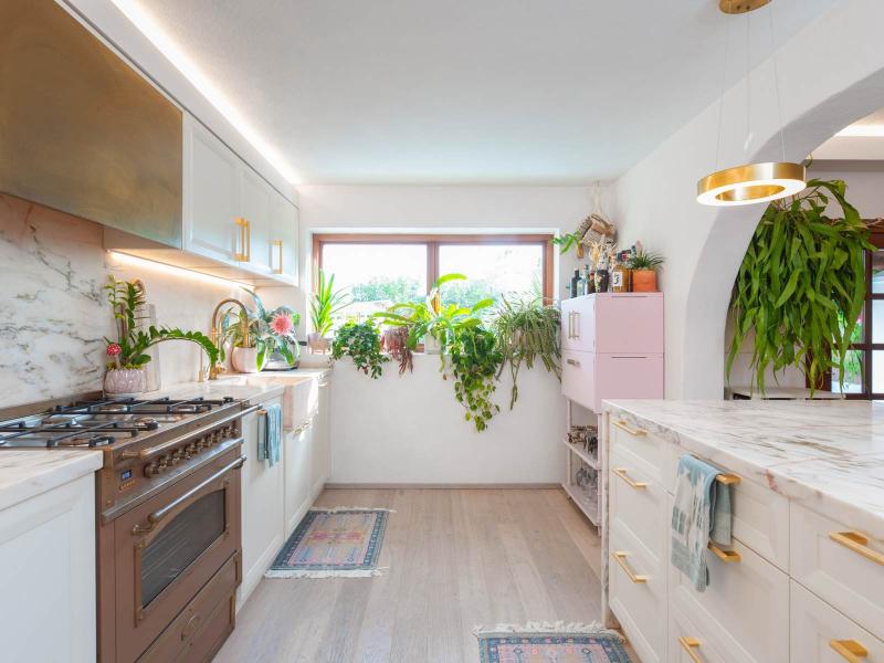 • Handmade Officine Giulio stove, double refrigerator, and Portuguese marble countertops