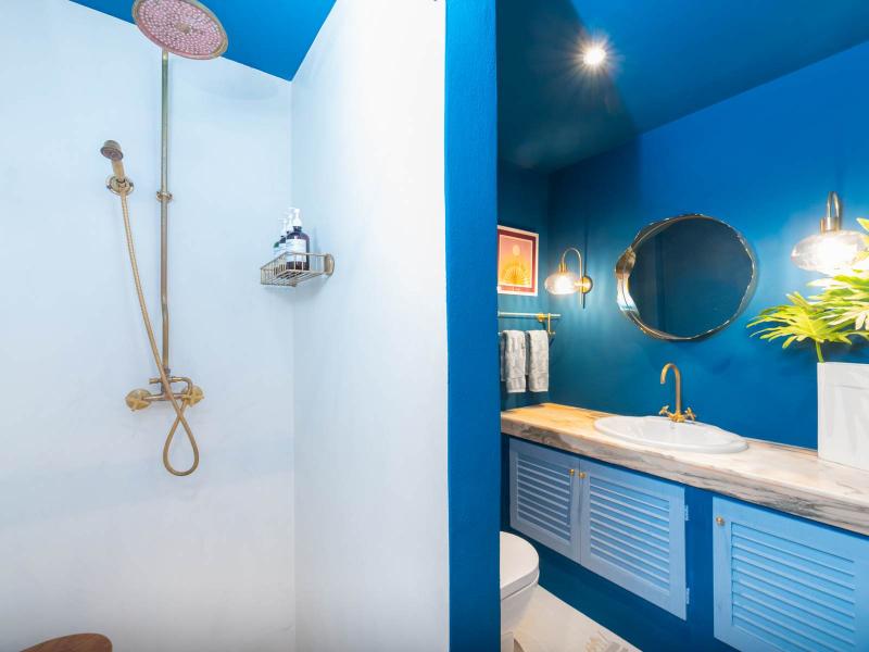 • Main suite accessed via exterior staircase, featuring stunning views of the hills and sea and direct access to a private terrace with sun loungers